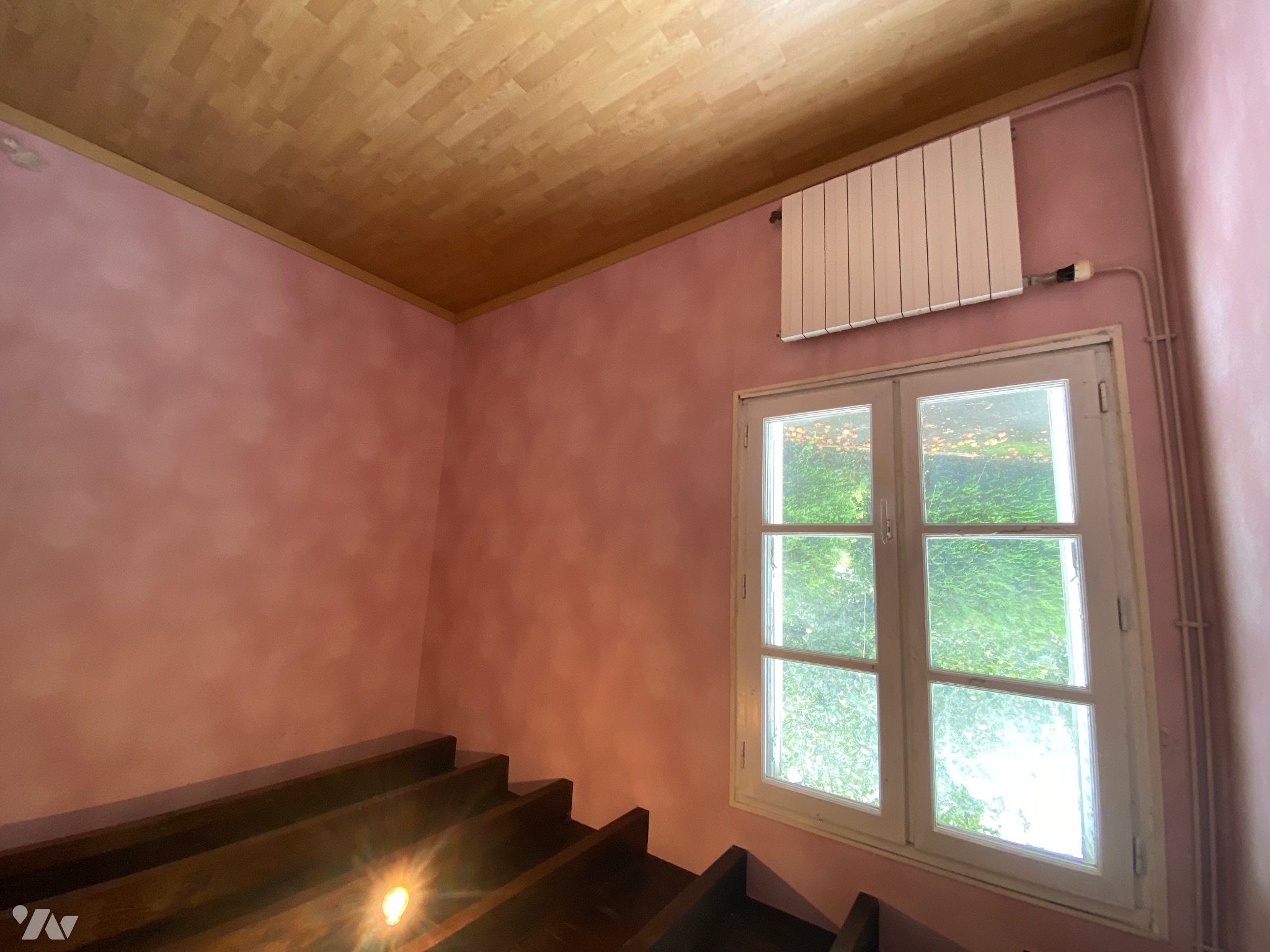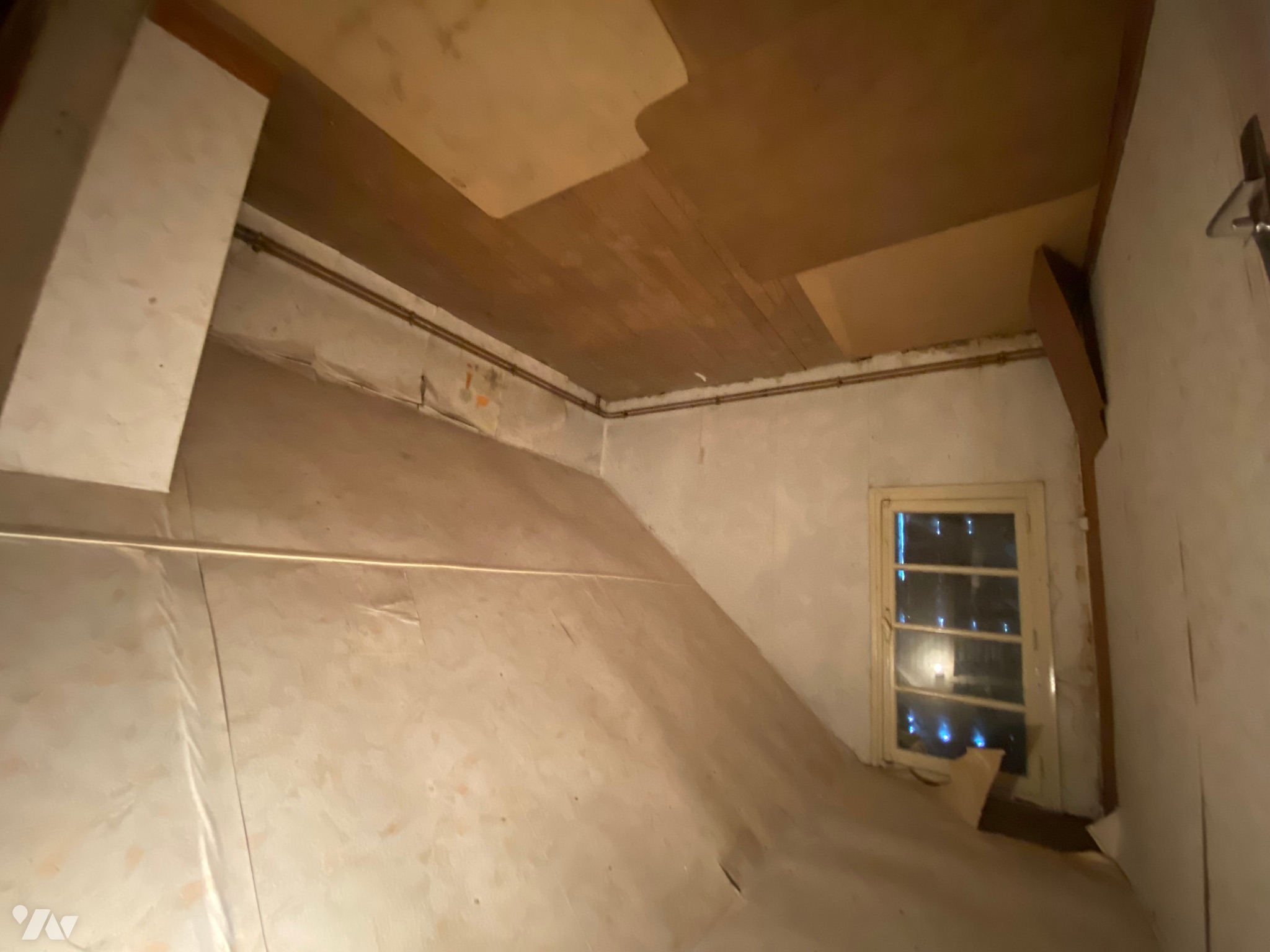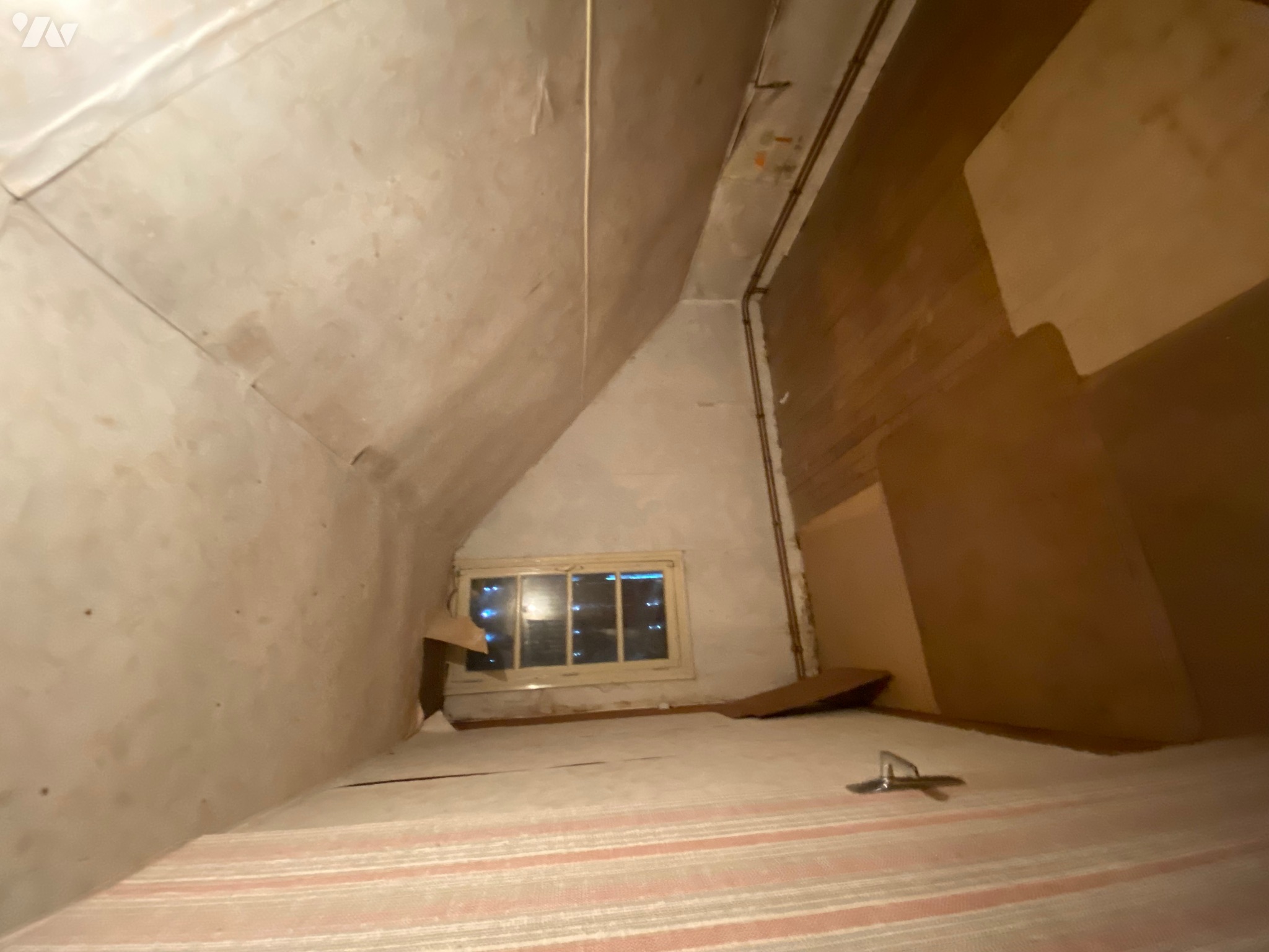 - Deux pièces mansardées d’environ 9 m² au sol avec une fenêtre en bois chacune,