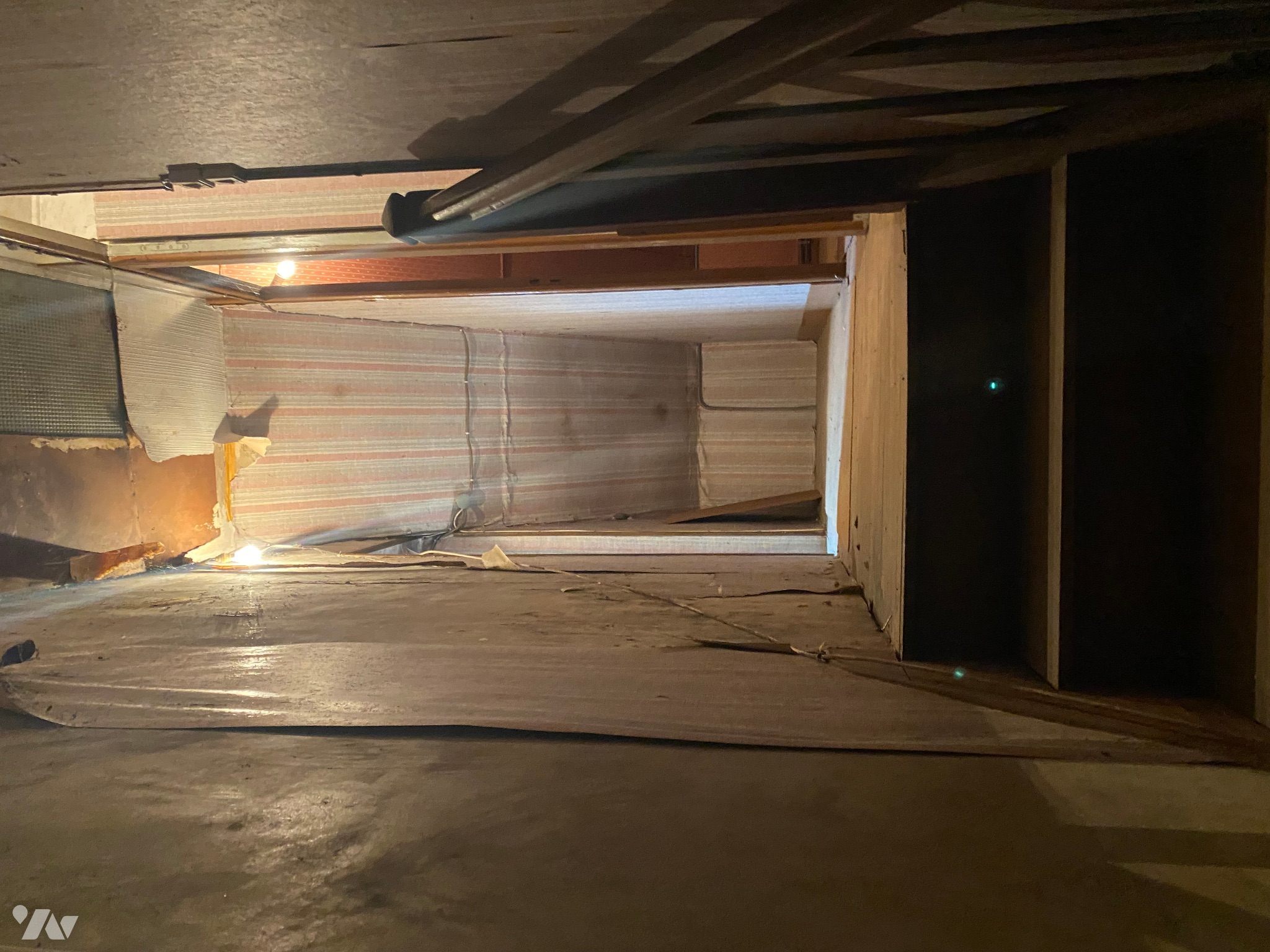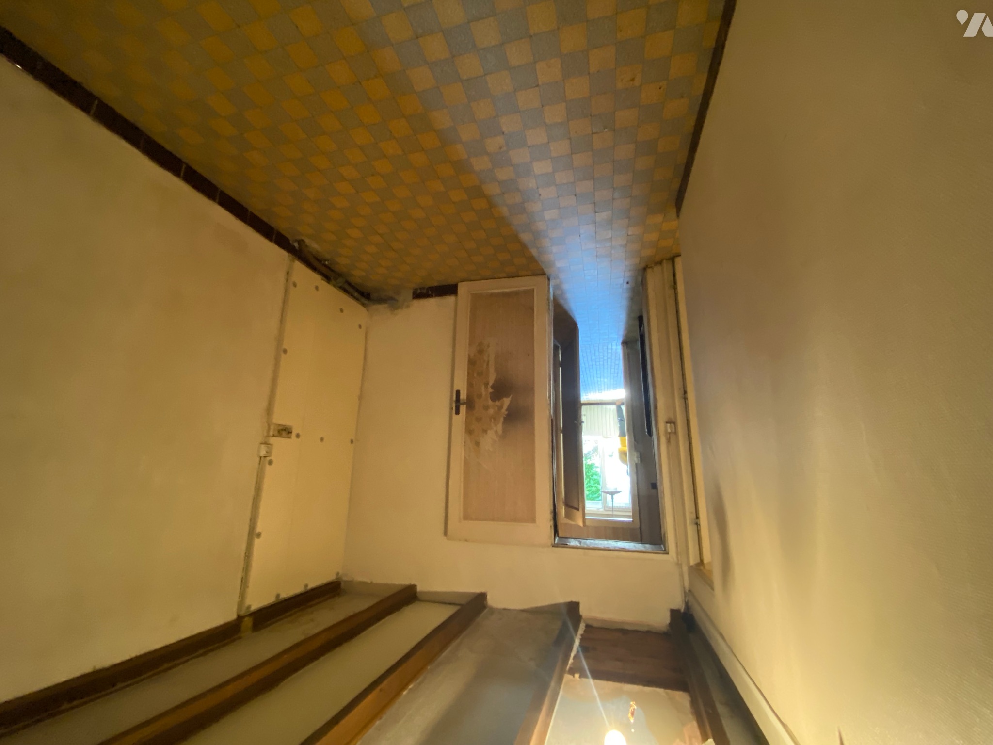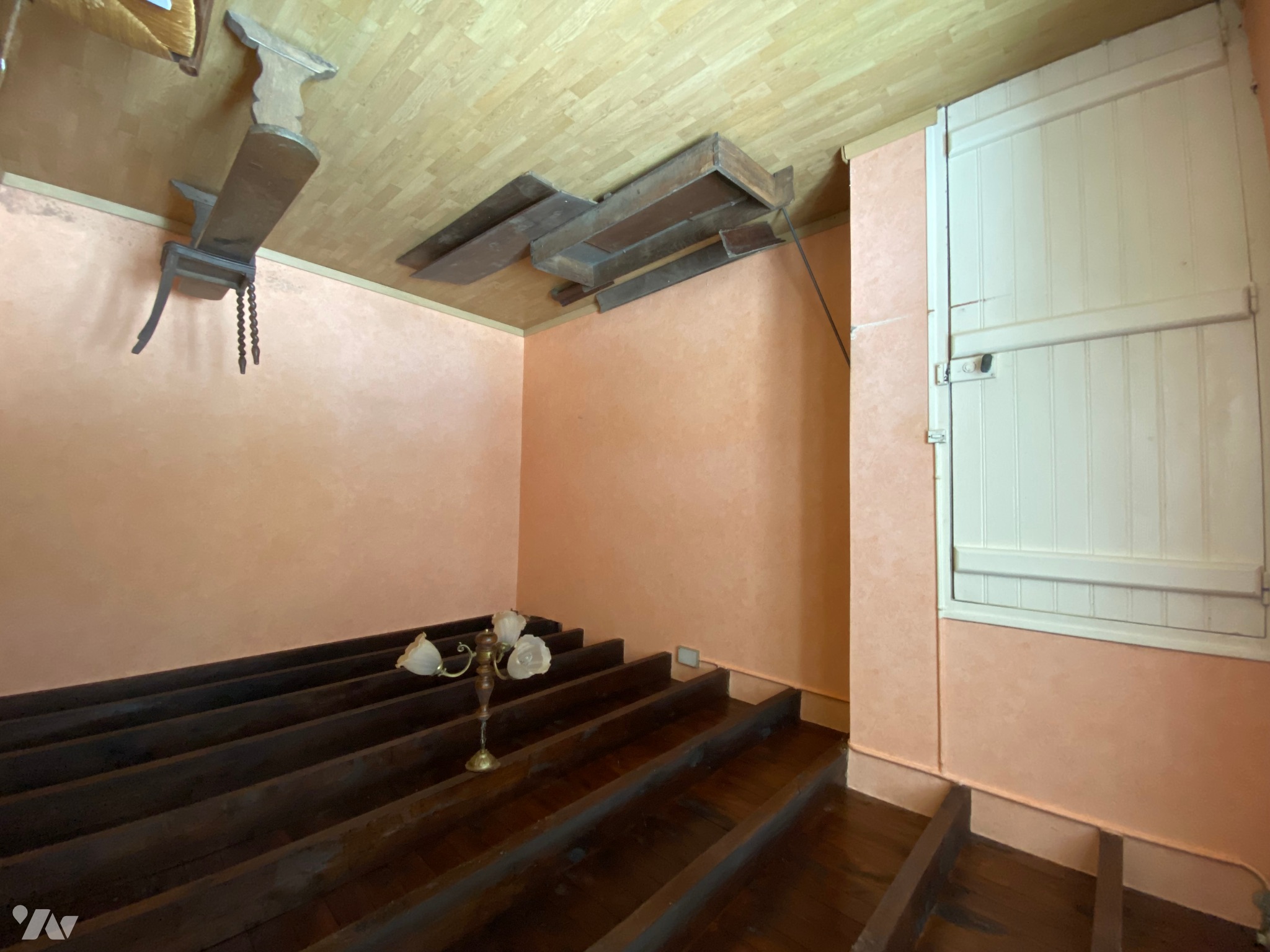 - Deux pièces mansardées d’environ 9 m² au sol avec une fenêtre en bois chacune,