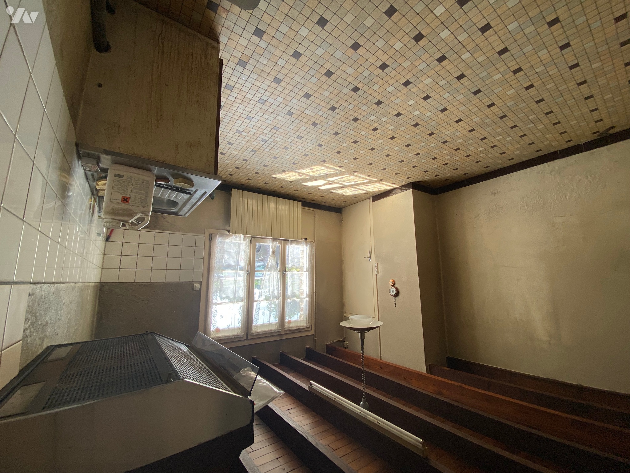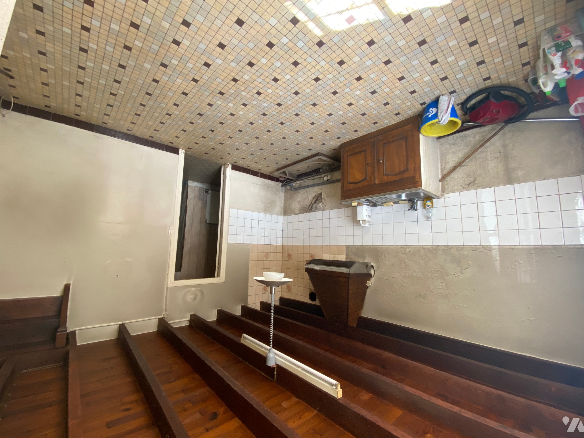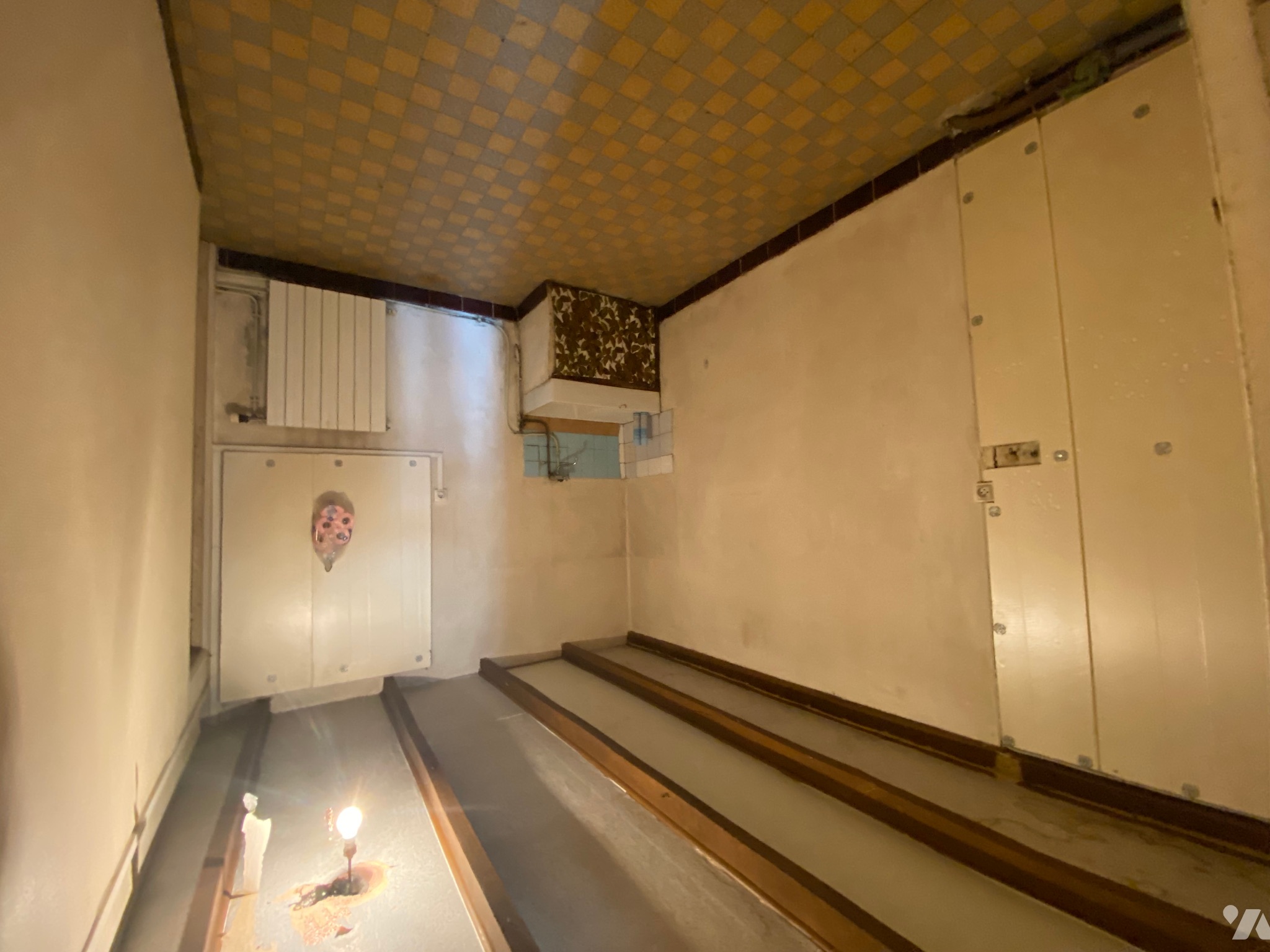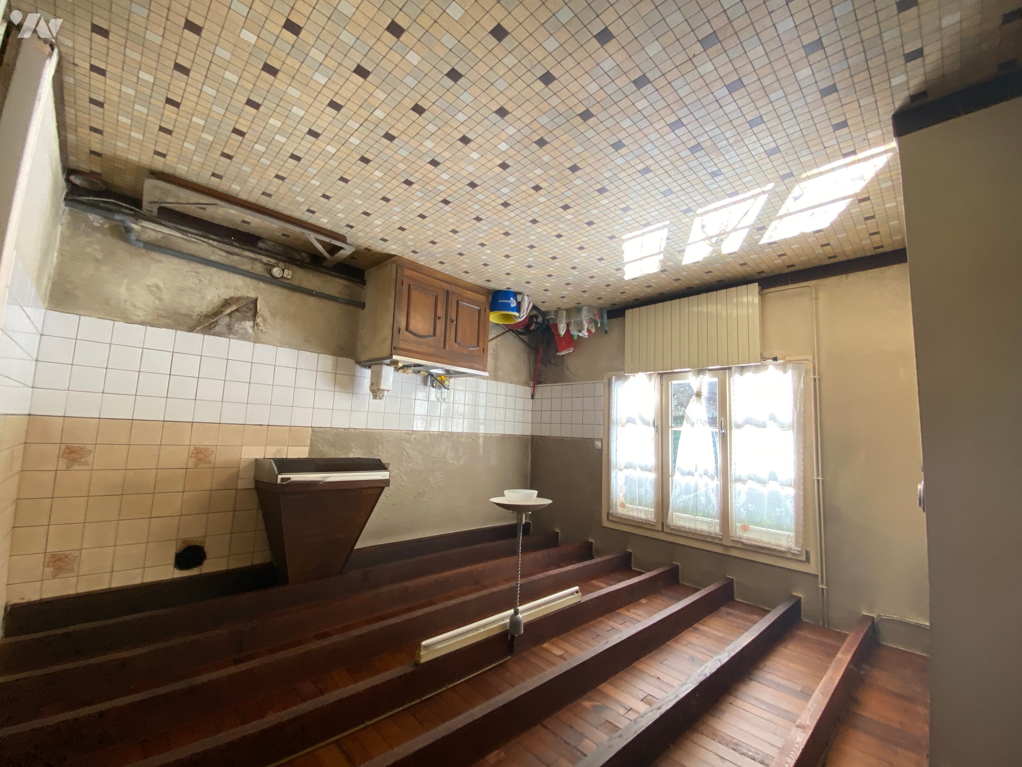 - Arrière-cuisine (8,3 m²) avec porte donnant à l’extérieur et un évier, carrelage au sol,