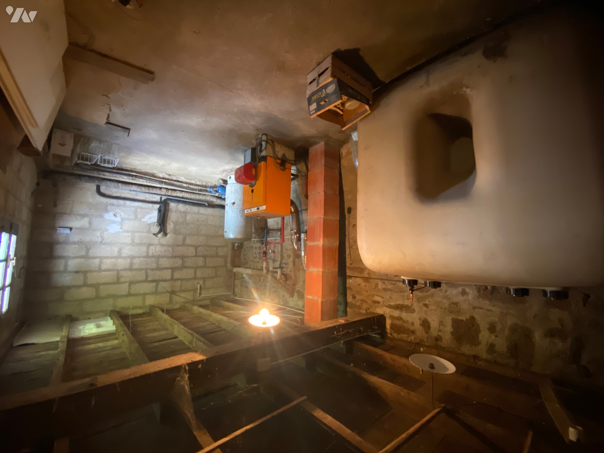 - Chaufferie (19 m²) avec chaudière à fuel et cuve, et deux caves d’environ 7 m² avec évier dans l’une d’elles,