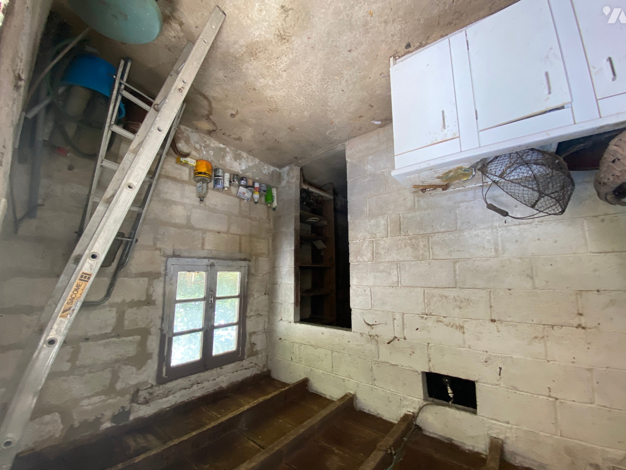 - Cave (7,5 m²) avec porte donnant à l’extérieur et sol bétonné.